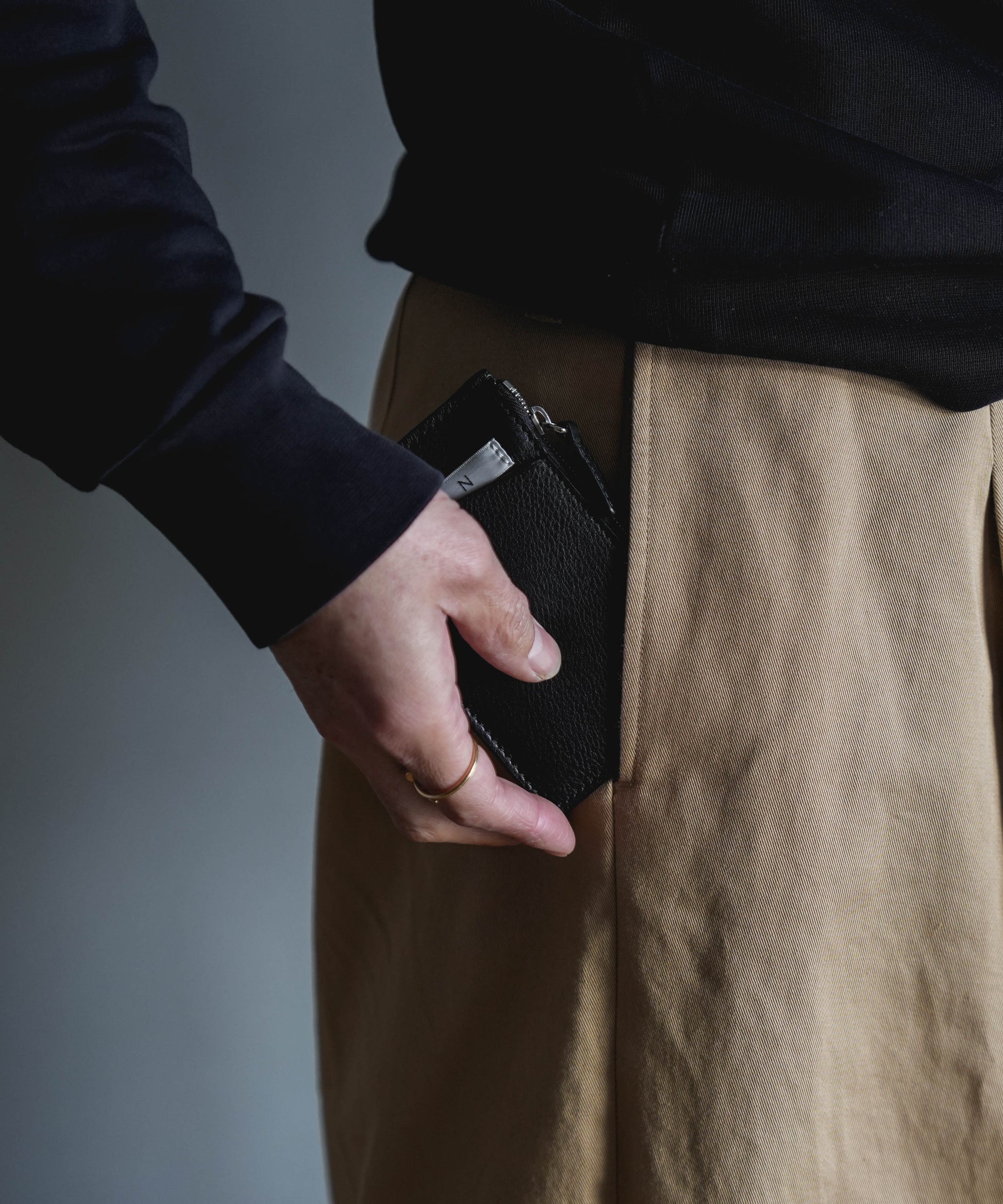 ライフスタイルに欠かせないカード類や紙幣をコンパクトに集約。使い勝手の良いフロントのスリットディテールや、内側から計算してデザインされたレザーコード付きのリングは、鍵を取り付けたり、アクセサリー感覚で持ち歩いたりと、使い手の想像力を広げます。
